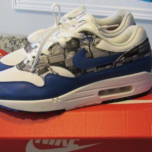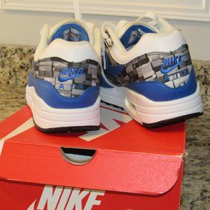 Sneaker boutique Atmos collaborated with Nike on this Air Max 1, which features the OG Royal color scheme. However, instead of suede and mesh, the upper is comprised of a full leather construction that's highlighted by a greyscale Nike shoebox graphic on the quarter panel. The Royal Blue is allowed to pop on the mudguard, Swoosh and eyelets, while black joins white and blue on the outsole.