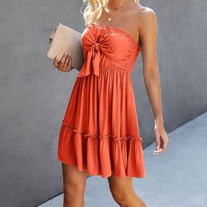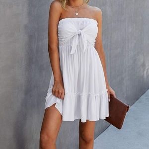 Boho Front Tie Ruffle Hem Strapless Mini Dress