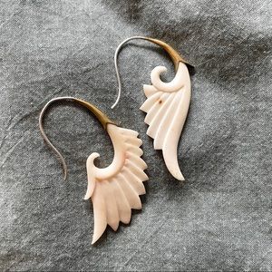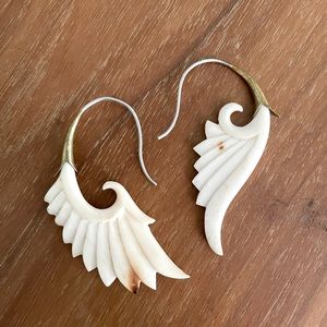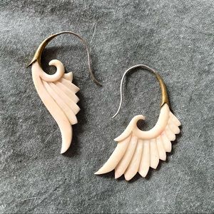Inlaid in brass with a sterling silver hook, these traditional winged earrings are hand carved from buffalo bone and have a genuine vintage patina.
