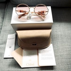 CHLOE - 57MM Round Frame Beaded Sunglasses - PINK