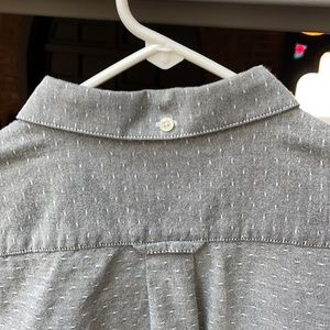 I have described this before as “casualish”, meaning it’s not a formal shirt but it works really well for work and can be worn with a sport coat if a last minute meeting comes up. I also really like the texture with the white stitching (flicking?) mixed in with the grey.