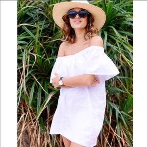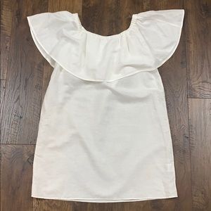 J Crew Linen Blend Off The Shoulders Ruffle Dress