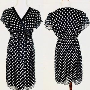 Motherhood Black White Polka Dot Maternity Crinkle Chiffon Flutter Sleeve Short Sleeve VNeck Wrap Look Midi Dress Women’s Large