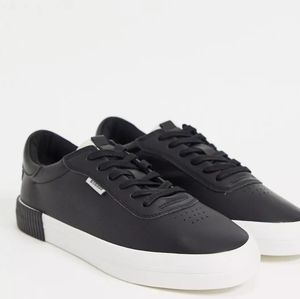 👣BERSHKA😄 Men's Faux Leather Platform Sneakers😃size 8