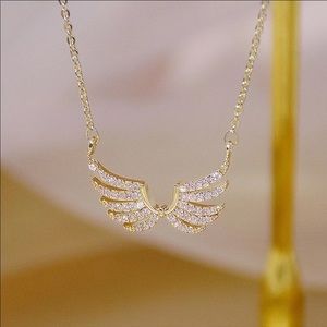 Gorgeous 14K filled gold Angel Wings necklace with pave zirconia accents . Simple and stunning .