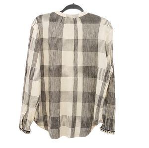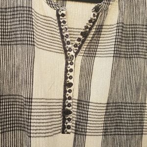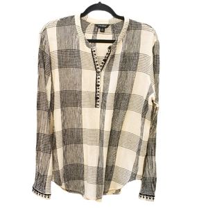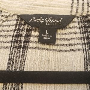 Beautiful Lucky Brand plaid shirt, black embroidery along the henly neck and cuffs.