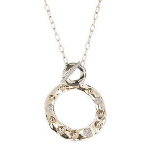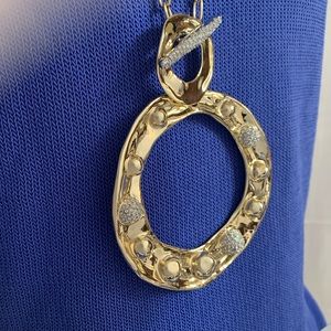 The newest collection references the traditional metalsmithing techniques of ancient Greece. Repousse domes rise from the organic metal surface of the Molten Dot Large Pendant Necklace in neatly oriented rows, punctuated by crystal pave for a modern twist on an ancient motif.