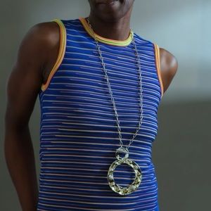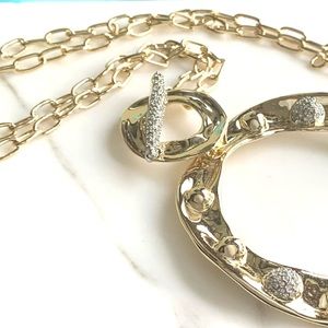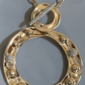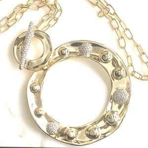 Alexis Bittar Large Gold Molten Repoussé & Crystal Dot Pendant Necklace