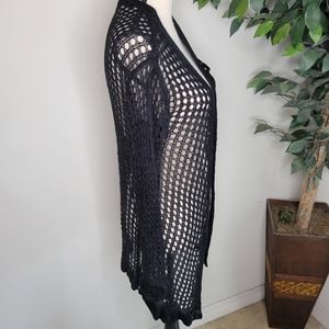 NEW Black Open Knit Flounce Sleeve Sheer Cardigan