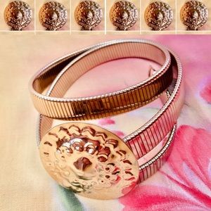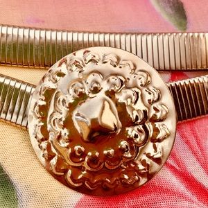 • Vintage (circa 1970’s) shiny gold tone disco style serpentine coil belt