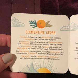 Clementine Cedar: Mandarin infuses dapper cedarwood and coastal eucalyptus with a fresh, citrusy spirit.