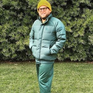 Jonah Hill & adidas Original warming puffer. The comfortable winter coat by adidas & the movie star offers warmth, elastic cuffs as well as hem for a fresh fit. Inspired by his upbringing in LA, yes it can get a bit colder too in LA, this puffer keeps you shielded when windy.