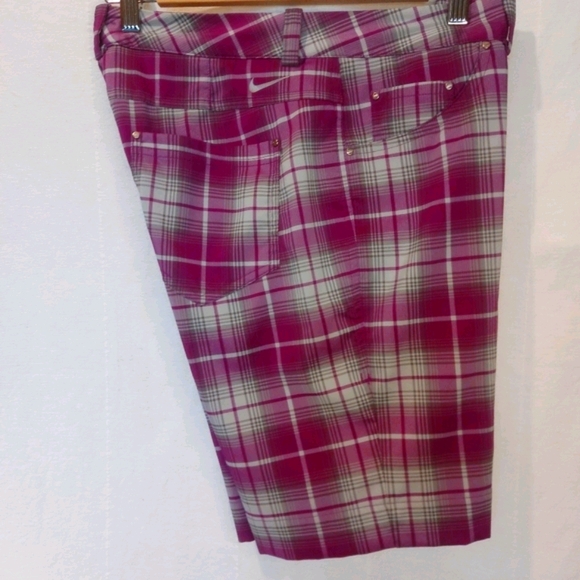 Pink, white and gray plaid Nike Golf Dri-Fit shorts. New without tags. Has 5 pockets in total.