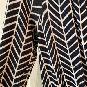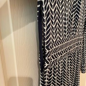 Navy Blue pattern dress with gold button accents on the waist and cuffs. Side zip closure. 95% Modal 5% Spandex Some slight piling as shown. Smoke Free Pet Free Home.