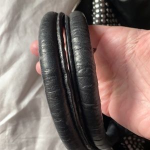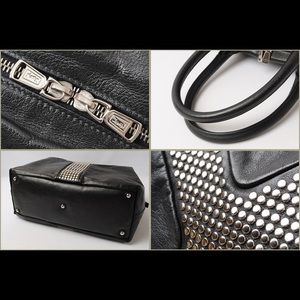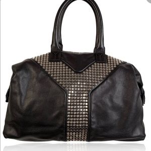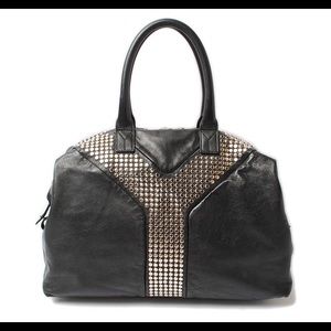 Rock style studded oversized satchel. Studded In the Center, with studs designed Y mark is YSL signature. Disconnect the side brackets and bag extends larger. Quite a lot of room. Inside zipper. Great used condition. Normal wear. Lining clean.