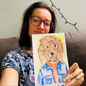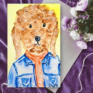 Hipster Dog Jacket ORIGINAL Watercolor Painting