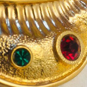 with red and green dazzling rhinestones. Stunning gold tone chain.