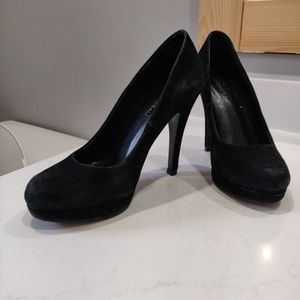 Black pumps from le chateau! Some scuffs especially on the inner sides (included pictures) I've never tried to fix them because they are too small on me!