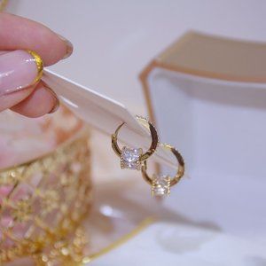 NEW 14K Gold Plated Diamond Huggie Hoop Earrings