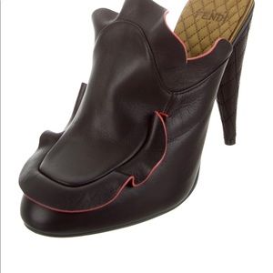 Fendi Leather Ruffle-Accented Mules