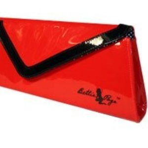 Sourpuss, red with black trim Bettie Page clutch. Polka dots on inside liner. NEVER USED!
