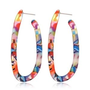 NEW WITH TAGS Multicolored Tortoise Shell Oval Hoop Earrings