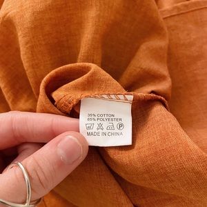 super cute boho orange / brown short sleeve ruffle top! only worn once! size small (but i wear a medium and it fits be good, so S/M)!