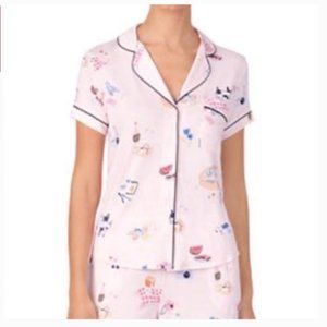 Kate Spade Picnic Printed Pink PJ Pajama Top Shirt size Small new with tags