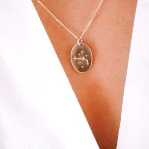 ✨ NEW minimalist Aries zodiac sign necklace! This dainty bohemian necklace features Aries’ star constellation on an oval disc pendant. Perfect for layering, elegant for any outfit, & as a beautiful gift.
