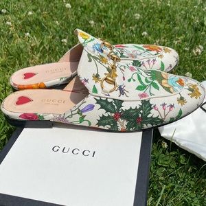 Gucci Princetown White Floral Canvas Loafers sandals EU 38
