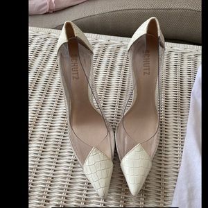 Absolutely stunning and I mean stunning Schutz sold out white heels. This color is sold out at Nordstrom. They have a cool crocodile pattern. You will get tons of compliments!