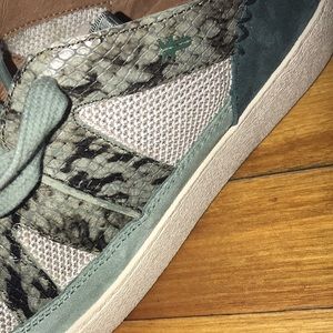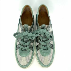 NWOB Frye Webster Overlay low-top sneaker is crafted from suede and polished snakeskin printed leather. The graphic mesh paneling offers breathability, while the hand-tacked details deliver authentically Frye. The lightweight EVA sole boasts that lived-in effect you love, while the padded collar and cushioned footbeds inject comfort into each step. Low-profile, these sneaks are designed to be worn with or without socks.