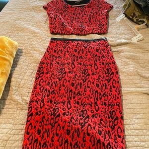 Red and black leopard print Express crop top and pencil skirt‼️