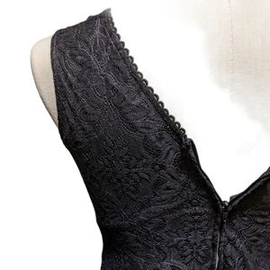Black lace A line boho dress with pink, green, and blue floral embroidery on both sides of the chest. V neckline on front and back. Zips down the back. The dress is lined, and the lace hangs down a few inches lower than the lining on the bottom hem. Perfect for summer date night, weddings and events, etc. There may be a couple of loose threads on the embroidery, but no major flaws. Overall great condition. Size XS. Fits me as a size 4. Xhilaration brand.