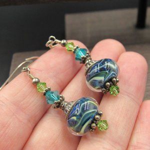 Sterling Silver Unique Glass & Crystal Earrings