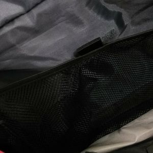 There's lots of organizaton on this bag - a large zippered pocket on the back, a zippered pocket on the Velcro-closed flap, two zippered pockets on the front, a wide zippered pocket on one inside wall with two pockets in front of it, a mesh pocket on the other inside wall, and even an insulated zipper-closed pocket for your bottle of water. Adjustable padded strap. Approx. 17" X 11" X 4".