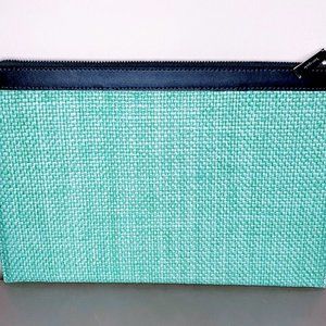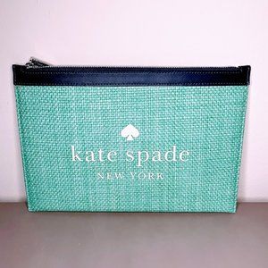 *Kate Spade Street Tote Straw Aqua Bloom Large Zip Pouch