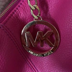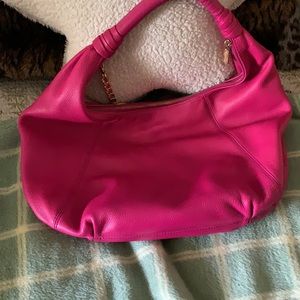 Gently used. Michael Kors ID# 35s4stth3l Rosy Fuchsia Leather Hobo Bag.. A few imperfections (see pics)but truly is a very fun purse for spring! I have also posted a wallet that was originally bought to match this popular spring find!