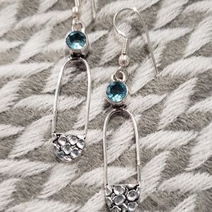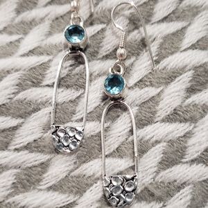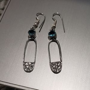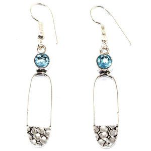 Swiss Blue Quartz Gemstone 925 Silver stamped Jewelry Earring 1.5''
