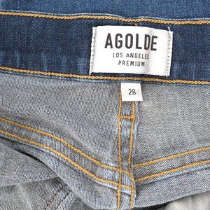 AGOLDE's classic cropped skinny jean in an exclusive wash Lapis. Sophie features a  high-rise, skinny silhouette, and is cropped at the ankle. All pics are of the actual jeans except the last one.