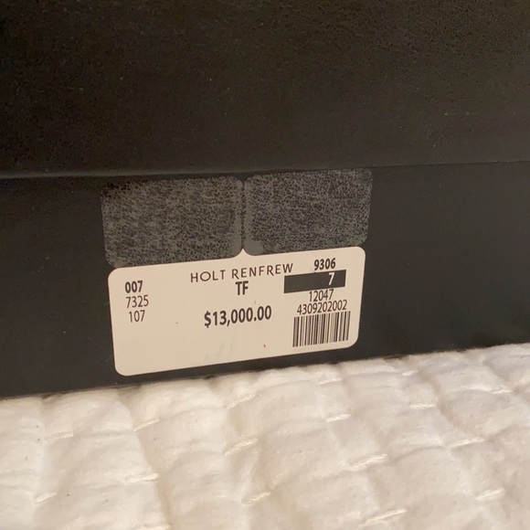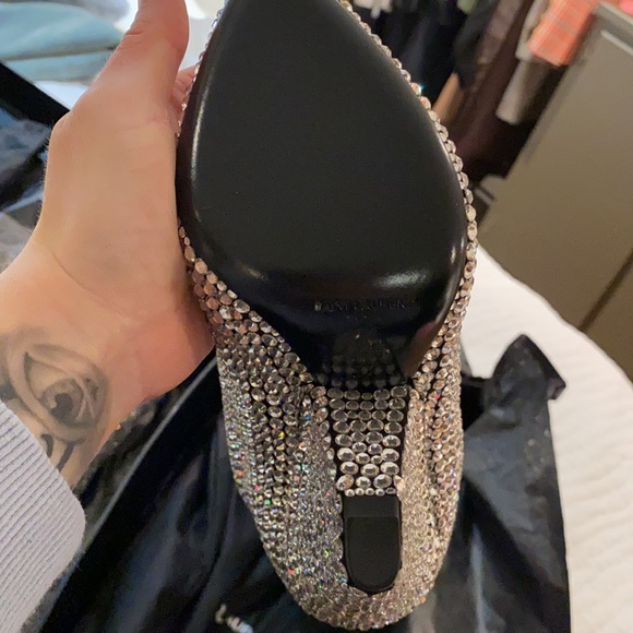 Includes box, two dust bags, extra heel tip and extra crystals.