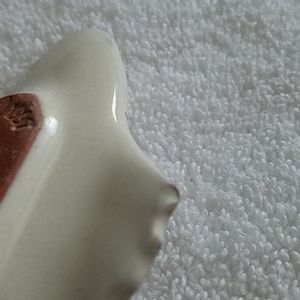 Mackenzie Childs set of 2, one left, one right fish shaped hand painted and glazed pottery drawer pulls. Some bubbles and rough spots in glaze as these are handmade. See close up photos. Stamped 1997 on back.