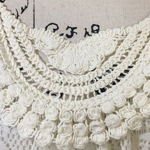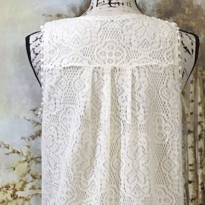 EUC Charming soft lace lined tunic. The front neckline has crocheted detailing with rosettes. The back yoke is pleated to allow a pretty flowing fit.
