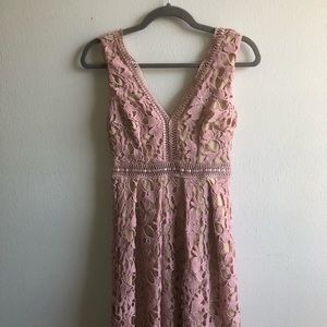 Romeo & Juliet Couture Double-V Lace Midi Dress Pink Sz S EUC.