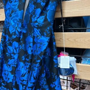 NWT,Mori lee long Dress 43107A Floral Black/royal