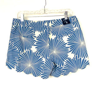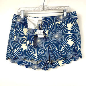 New with tag J. Crew Factory shorts size 6. These blue and cream print shorts feature a scallop hem.
