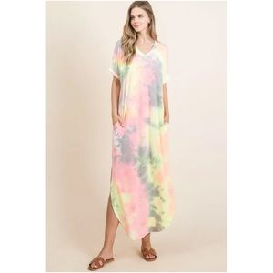 SOLD OUT CLEARANCE Neon Tie Dye Pocket Short Sleeve Long Maxi Dress