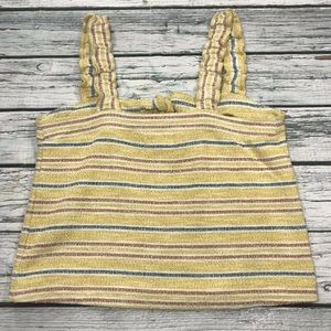 Madewell Tank Top Yellow Striped Sleeveless Shirt Tie Front texture thread NWT