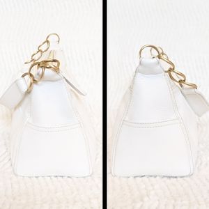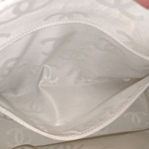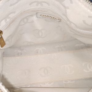 đź’• Large stitched interlocking G logo, attention grabbing gold hoop details and protective base studs, CHANEL logo zipper pull, and jacquard logo interior lining. Interior features 2 zip pockets with gold tone logo zippers.