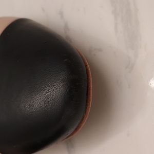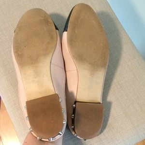 Blush and black leather mules with cool stud detail on the heels. Few small scuffs.